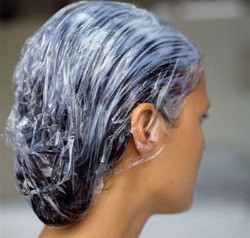 Глину разбавит минеральной водой до консистенции жидкой сметаны. Качественно втереть в волосы, надеть на голову полиэтиленовую шапочку, укутать полотенцем на двадцать минут.