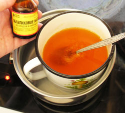 | Основа плавится без добавления воды. На фото показана расплавленная прозрачная основа. | |