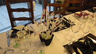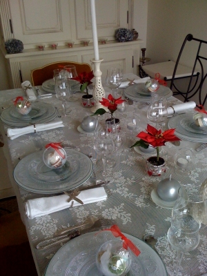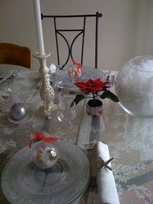 Идеальное украшение стола для новогоднего праздника и царящую атмосферу праздника создаст белая скатерть на обеденном столе, романтическую обстановку — ароматические свечи, находящиеся в центре стола на блюде, увенчанные красными розами.