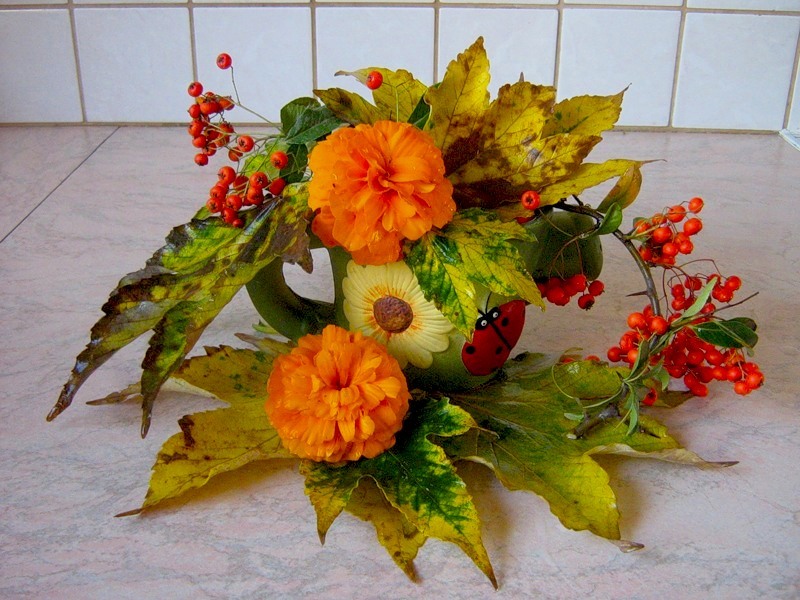 Осенние дни не должны быть менее веселыми и радостными. На прогулке вместе с детьми в парках обязательно соберите красивые и разноцветные букеты из опавших листьев, которые пестрят красными, желтыми и оранжевыми оттенками. Поставьте их в прозрачную вазу и дополните ягодами рябины и шиповника. Такие красивые и очень редкие букеты идеально украсят ваш дом.