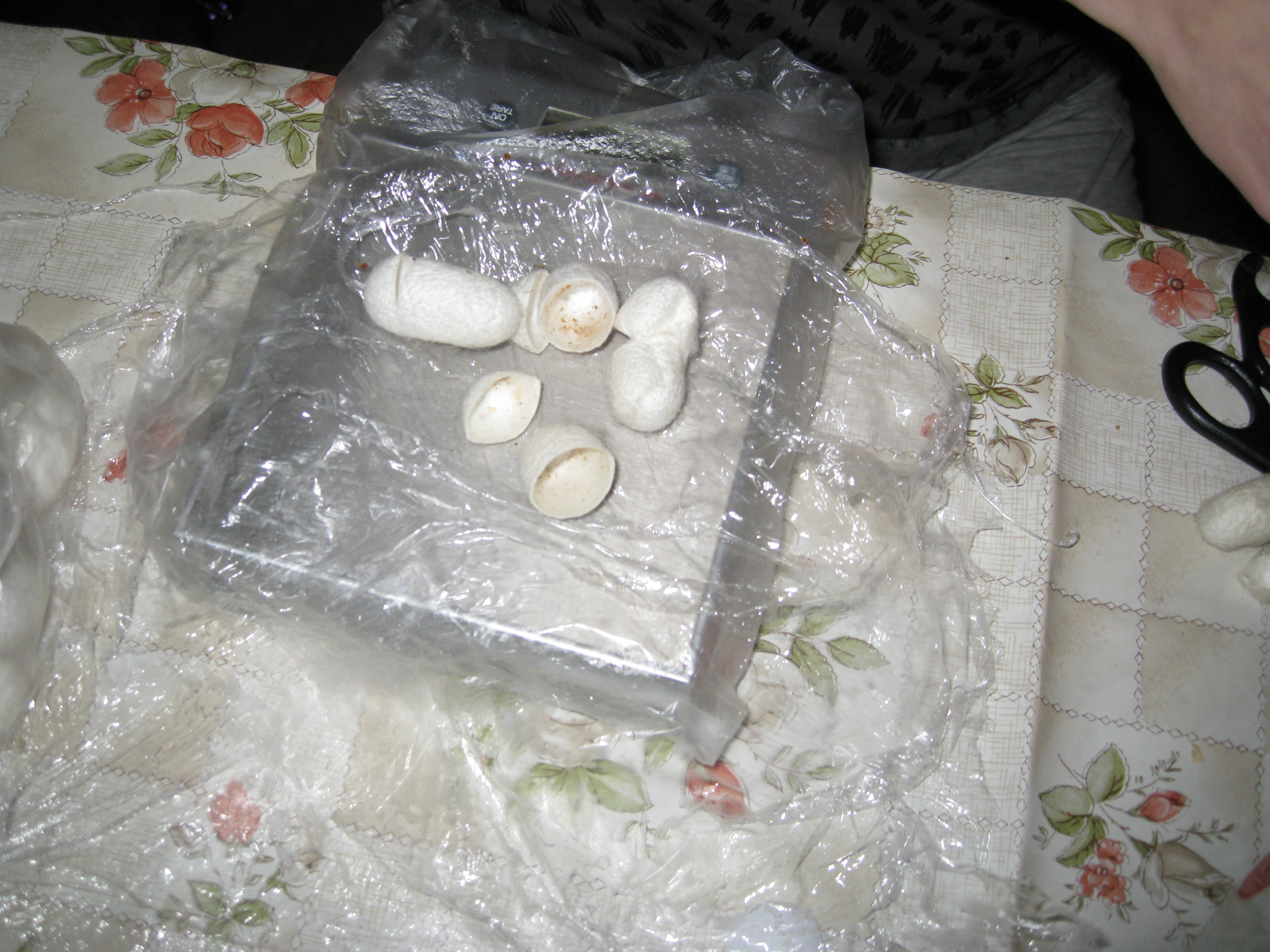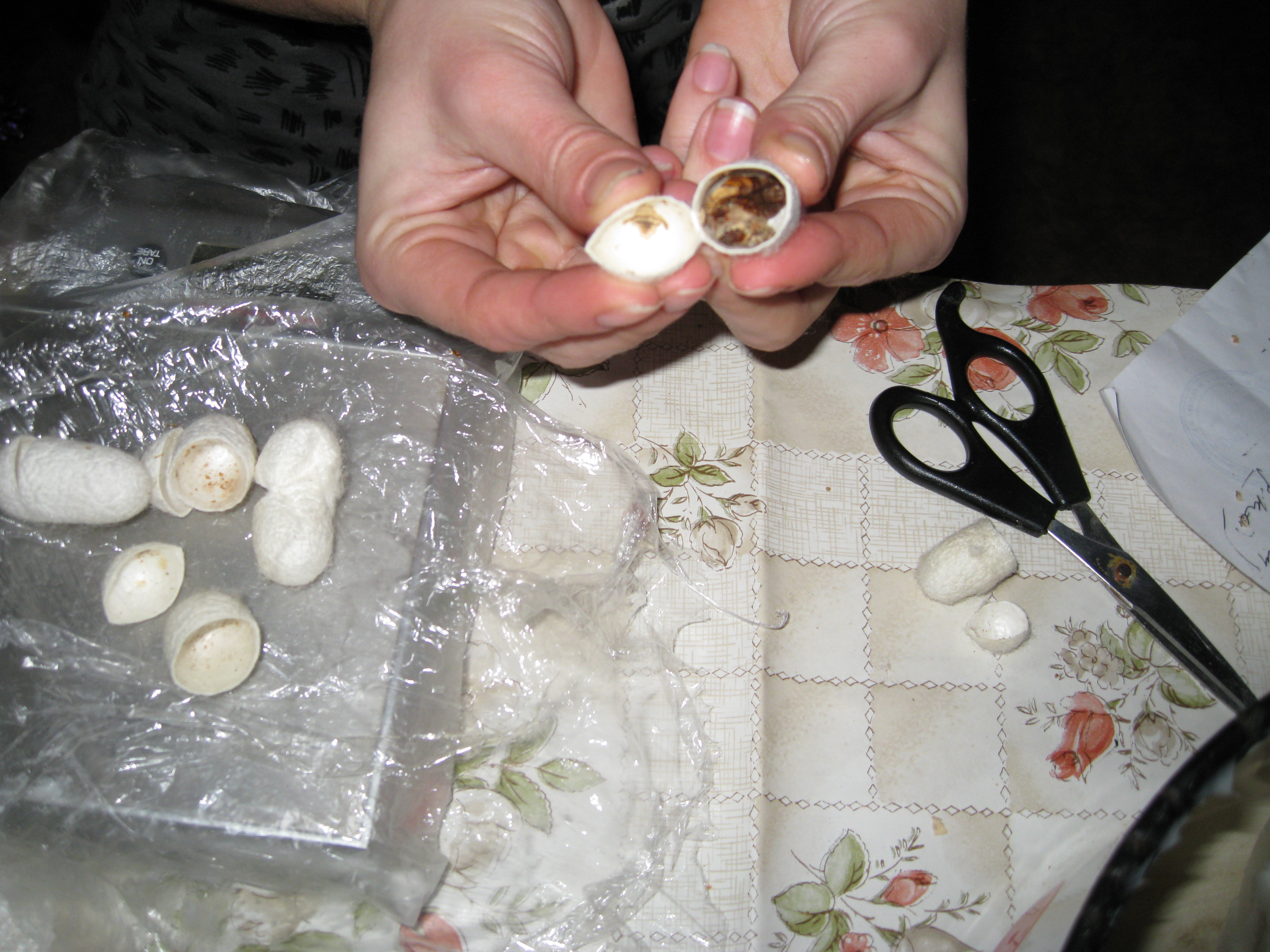 Очищаем от куколок коконы, взвешиваем и измельчаем их.