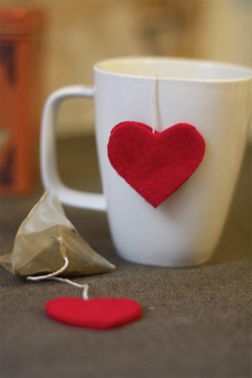 Нужно вырезать несколько сердечек из красной бумаги. Проклеить между ними ниточку пакетика чая. Дайте высохнуть. Затем вы маркером или ручкой пишите сообщение или слова любви